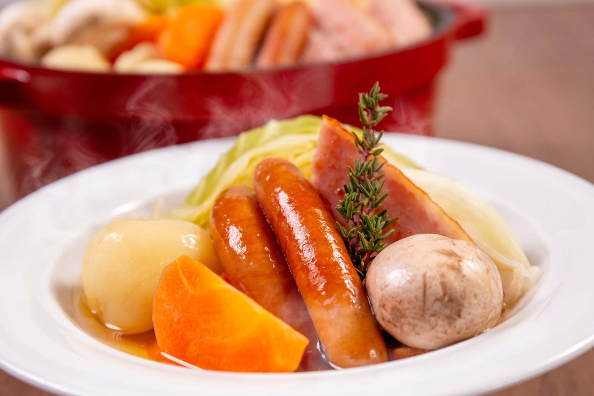 春野菜と八幡平マッシュルームのポトフ朝食ビュッフェ「いわて春の味覚フェア」のフェアメニューとして。 県産の春野菜と生食ができるほど良質な「八幡平マッシュルーム」、岩手が誇るブランド豚「白金豚」のベーコンを使用した、心も身体も温まる一品です。 |