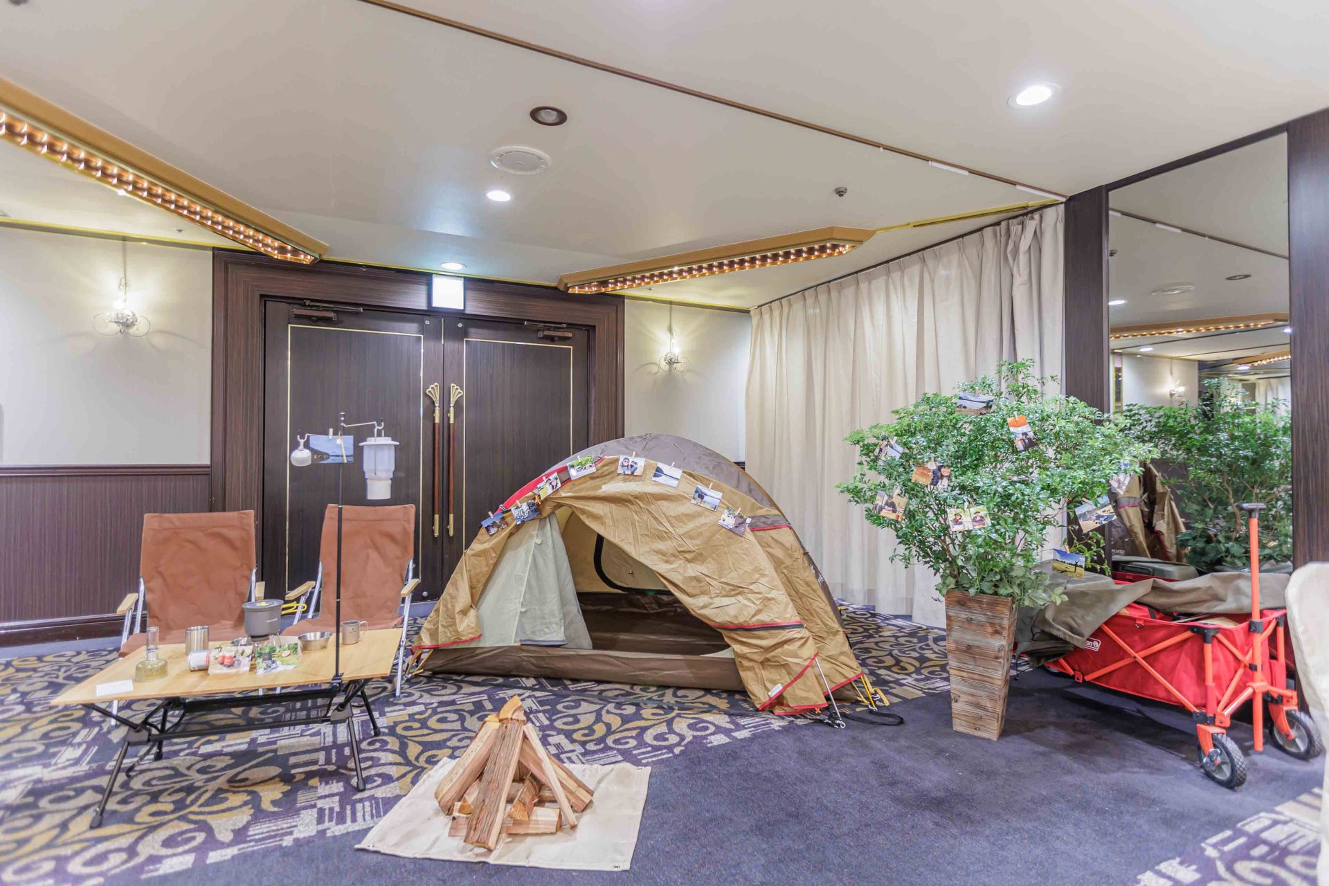 わたしたちの共通の趣味がキャンプということで、披露宴会場にテントを設置しました。